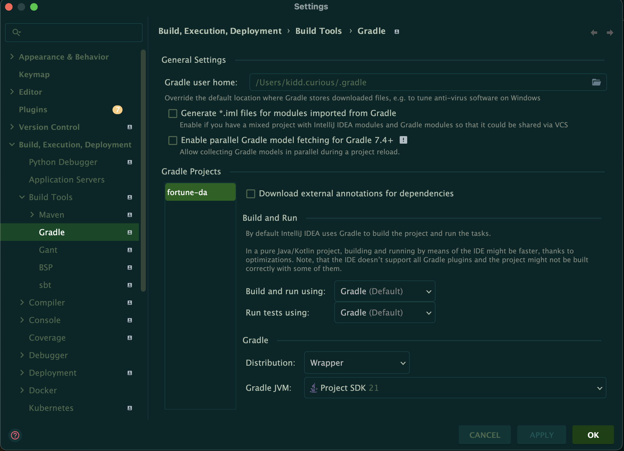 - Build, Execution, Deployment → Build Tools → Gradle