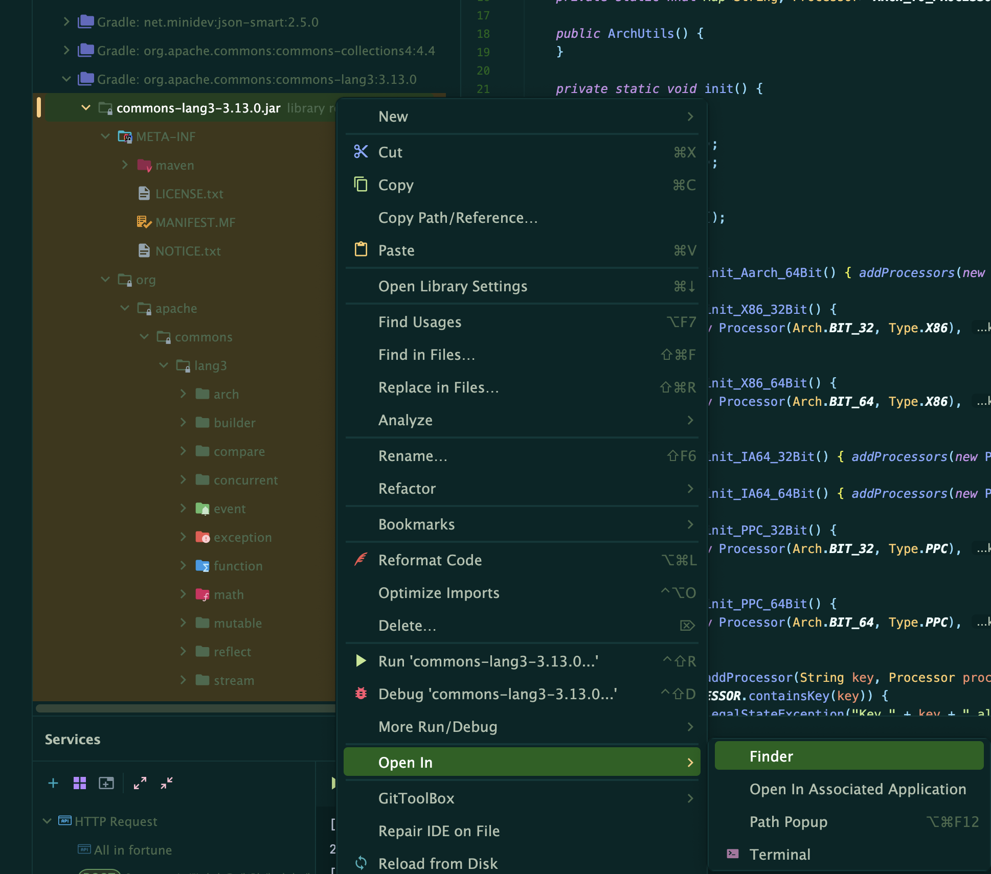- External Libraries → 라이브러리 우클릭 → Show in Finder (mac) or Show in Explorer (Windows)